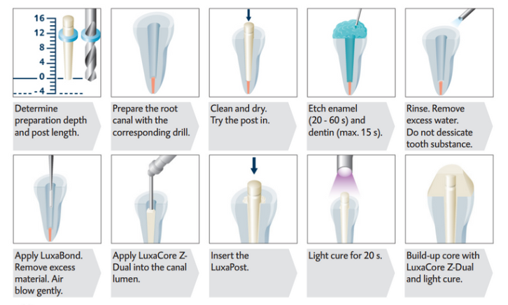 Indication: manufacture of a reliable retention of the core build-up in cases of insufficient coronal tooth substance