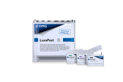 DMG‘s radiopaque, pre-silanized LuxaPost can be cemented perfectly with LuxaCore Z. Its flexural modulus is similar to that of LuxaCore Z – and to dentine as well. For simple handling it is available in a convenient package that makes it easy to remove and refill the LuxaPost boxes.
