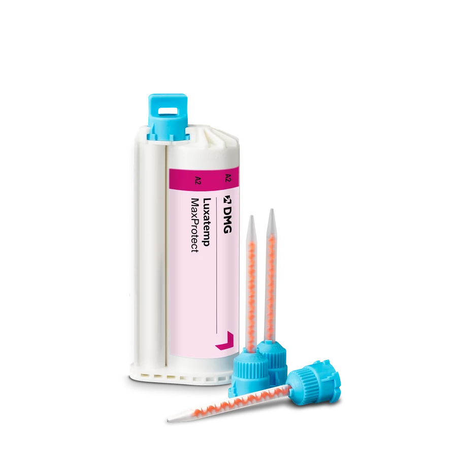 Luxatemp MaxProtect: Exceptional stability. Excellent aesthetics. Easy handling. A long-term temporary restoration (up to 1 year) in just a single session. If you are looking for a material for long-term temporary restorations that sets new standards in multiple areas while remaining cost-effective, Luxatemp MaxProtect is the ideal choice.